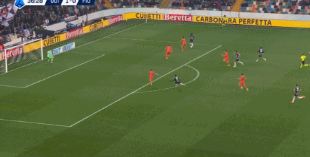 第90+4分钟,布克萨右路突破至禁区兜射远角破门,乌迪内斯3-0佛罗伦萨